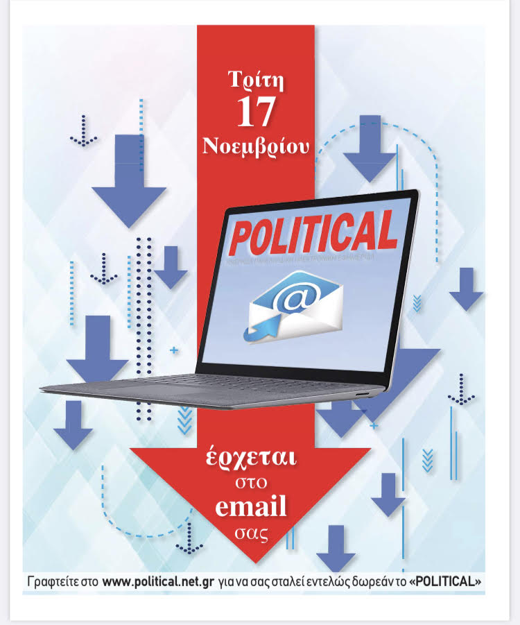 Με ένα κλικ βρίσκεται στο email σας από τις 17 Νοεμβρίου και κάθε ημέρα (από Τρίτη έως και Σάββατο), αλλά και στο www.political.net.gr .