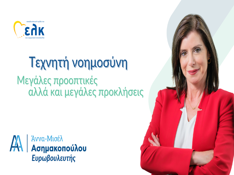 Στην προσπάθεια ανάδειξης των προοπτικών και προκλήσεων της τεχνητής νοημοσύνης πρωτοστατεί η Άννα-Μισέλ Ασημακοπούλου, Ευρωβουλευτής της Νέας Δημοκρατίας και του Ευρωπαϊκού Λαϊκού Κόμματος και μέλος της ειδικής Επιτροπής Τεχνητής Νοημοσύνης στην Ψηφιακή Εποχή (AIDA).